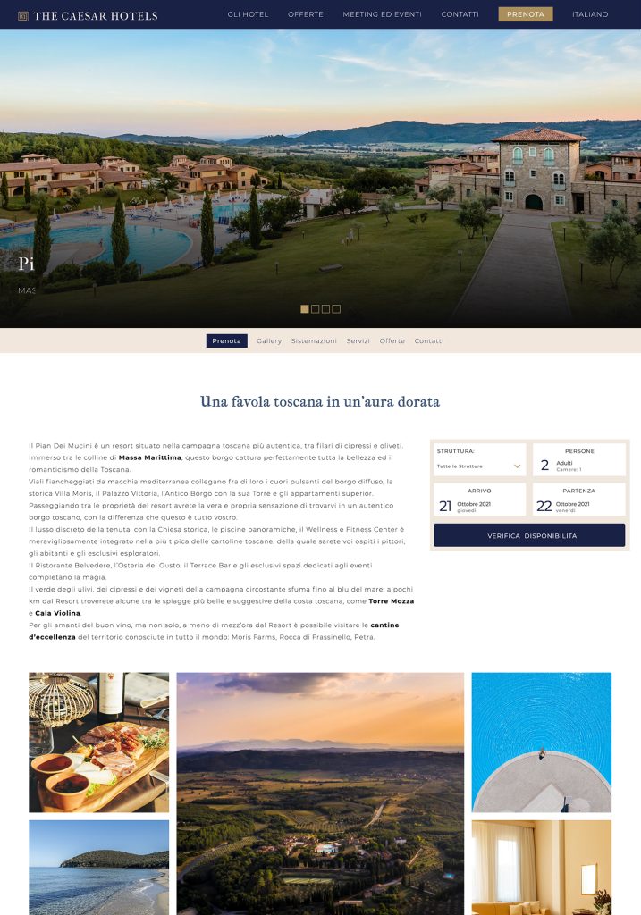 Dobbiamo studiare una navigazione che aiuti l’utente a non perdersi ma ad andare dritto al punto: innamorarsi della tua struttura e prenotare!